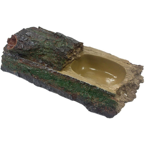 The Komodo Forest Dual Feeder provides the perfect feeding site for various species of reptiles. The dual bowl with a unique feeding station stimulates natural feeding behavior. Feeders can be placed inside the station and released out of the top hole in the log. It is easy to control the access of food with the removable, sliding top. Great function that will nicely blend into your environment. Heavy-duty resin hide with a natural finish that is easy to maintain and clean.