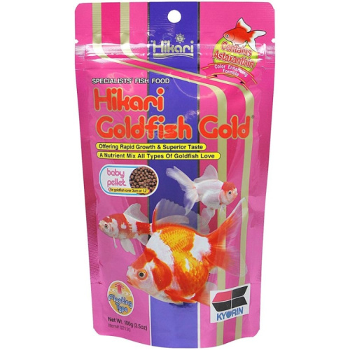 Hikari Goldfish Gold baby pellets are specially formulated floating pellets to bring out the vibrant colors in goldfish and baby koi. Rich in carotene, an easily assimilated color enhancer, Goldfish Gold starts your pet off right during that all important first year.