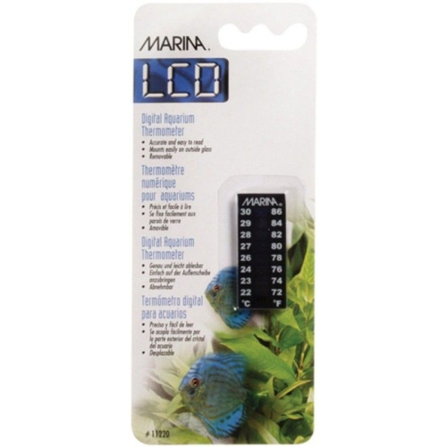 The Marina LCD Digital Aquarium Thermometer is an easy-to-read liquid crystal display (LCD) aquarium thermometer that is reliably accurate to plus-or-minus 1