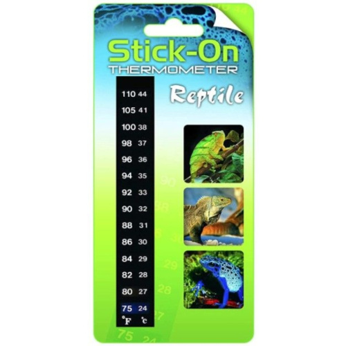 The Rio Stick-On Digital Reptile Thermometer is a great way to keep an eye on your reptiles temperature. This thermometer strip is temperature sensitive & splashproof. Colored marking shows the current reading temperature in both Centigrade & Fahrenheit.